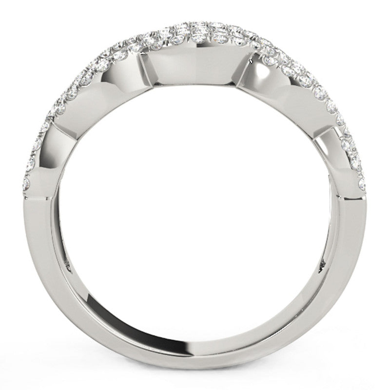 Diamond Studded Double Interlocking Waves Ring in 14k White Gold (5/8 cttw)